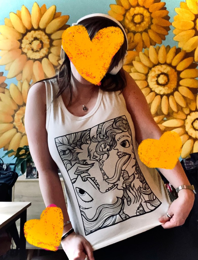Have you seen my online store? It is a collection of feminist, anti-patriarchal, creepy, funny, and sometimes sunny designs for you to wear. I’m wearing them myself already, cause damn I love them!