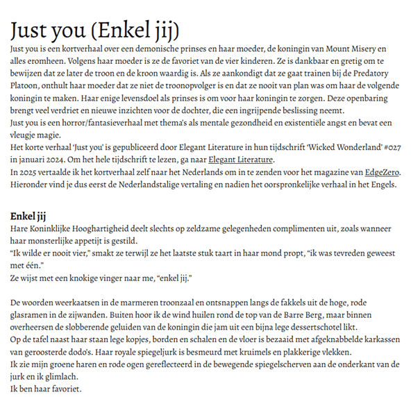 Short story ‘Just you’ published by Elegant Literature in their magazine #027.